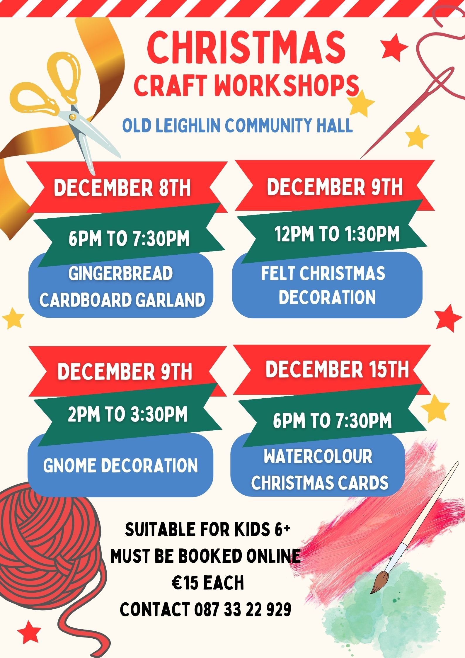 Children will learn the basics of sewing to create fun felt Christmas decorations suitable to hang on the Christmas tree. All materials supplied.